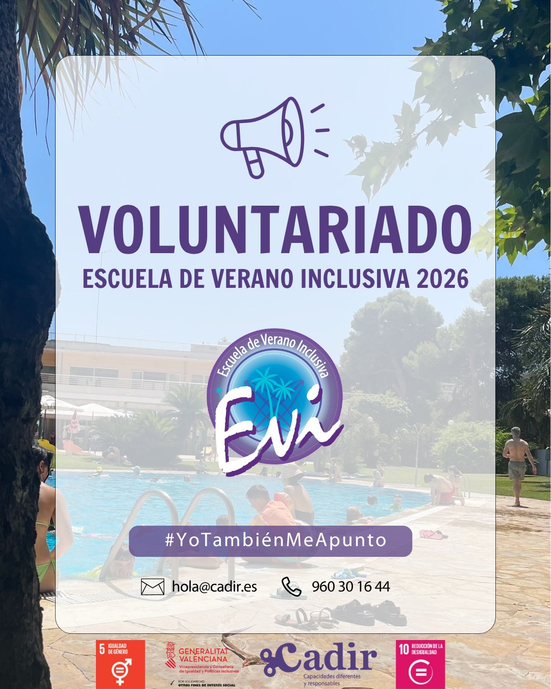 Los datos personales facilitados en este formulario gozan de la protección del REGLAMENTO 2016/679 DEL PARLAMENTO EUROPEO Y DEL CONSEJO de 27 de abril de 2016 (RGPD) y el responsable de su tratamiento es Asociación CADIR. Capacidades Diferentes y Responsables, a quien declaro la exactitud y la veracidad de los datos proporcionados y autorizo en el marco de la ejecución del contrato entre las partes y de su consentimiento, durante un periodo indefinido, con las siguientes finalidades respectivamente:
