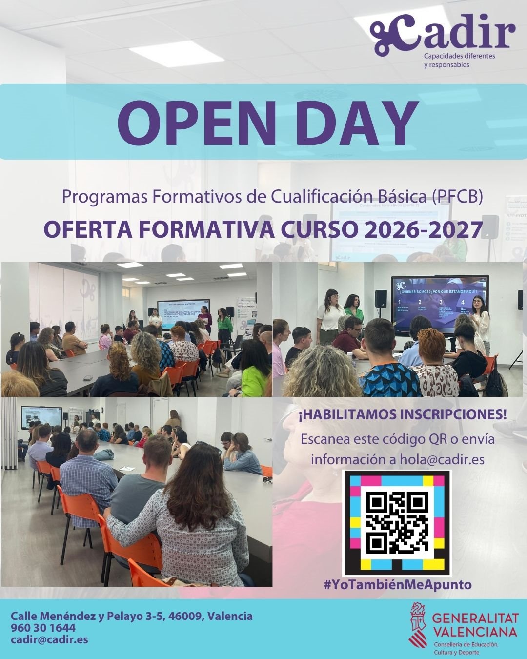 En Asociación CADIR este miércoles 22 de abril se realizó la jornada de Openday de la oferta formativa para el curso 2026-2027 de los Programas Formativos de Cualificación Básica adaptados a alumnado con necesidades educativas especiales entre 16 y 21 años sin graduado en Educación Secundaria Obligatoria.