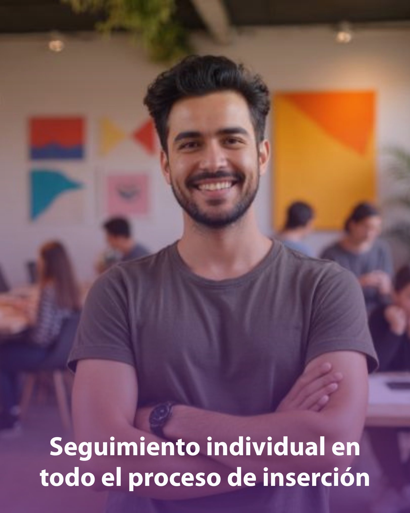 Seguimiento individual en todo el proceso de inserción: objetivo profesional, CV, entrevistas, mercado laboral, puesto de trabajo...
